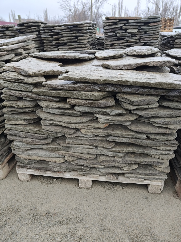Плитняк песчаник дракон серо-зелёный галтованный для облицовки цоколя, отмостки 20-35 мм